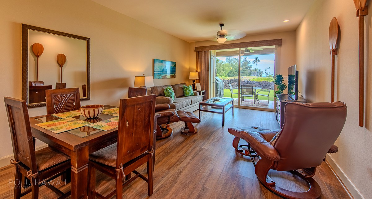 2 bedroom corner unit with stunning ocean views and the Waikoloa Resort Golf Course as your foreground.